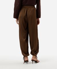 Incorpore sofisticação e conforto ao seu visual com esta calça feminina acetinada. Com uma modelagem aladim moderna e fluida, esta peça é perfeita para criar produções que vão do casual ao elegante sem esforço. Seu tecido com toque de cetim proporciona um caimento leve e um brilho sutil, garantindo um look cheio de personalidade.