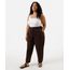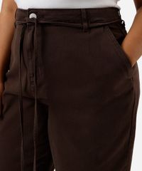 Calça feminina confeccionada em sarja estruturada. A peça tem a modelagem balloon, com construção afunilada e o caimento é confortavelmente solto ao corpo. O modelo tem cintura média, cós com passantes para cinto, cordão para amarração e fechamento frontal por botão e zíper. Possui dois faca frontais, dois aplicados na parte posterior e acabamento pespontado nas barras.