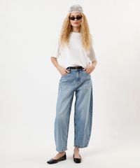 calça balloon feminina jeans cintura média azul