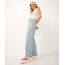 Calça feminina confeccionada em jeans azul claro. A peça possui modelagem barrel com caimento solto e barra levemente afunilada, comprimento cropped, cintura média, cós com passantes aplicados, três bolsos frontais e dois bolsos posteriores, fechamento frontal por botão e zíper, detalhe de recortes e acabamento pespontado.