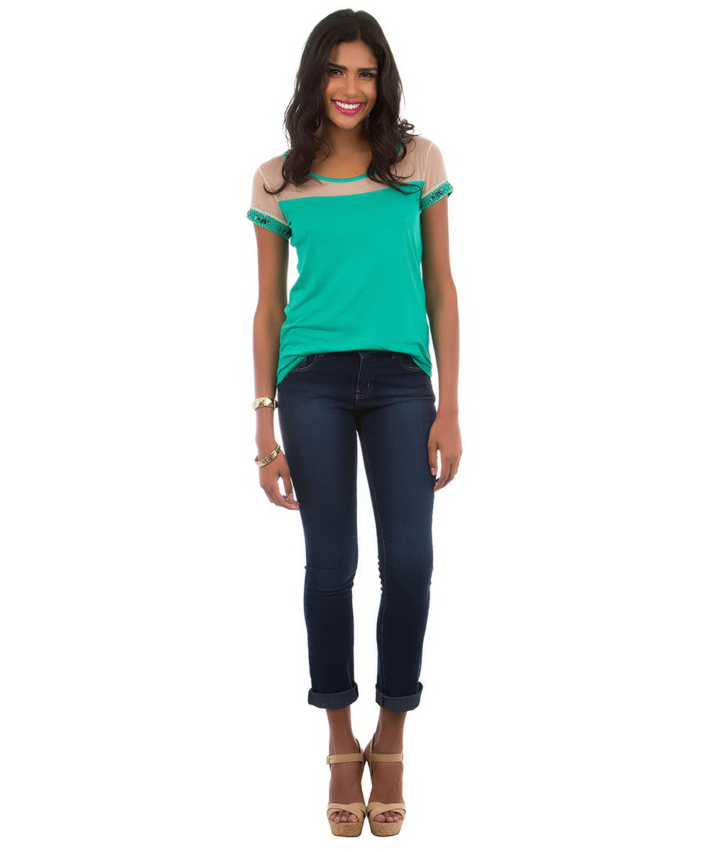 Com cintura média e cós estreito, a calça de modelo skinny tem destaque nos passantes que ultrapassa o limite do cós. Apresenta bolsos frontais e traseiros e fechamento em zíper e botão. Use com blusas estampadas e arrase no look.