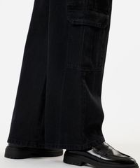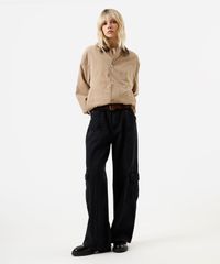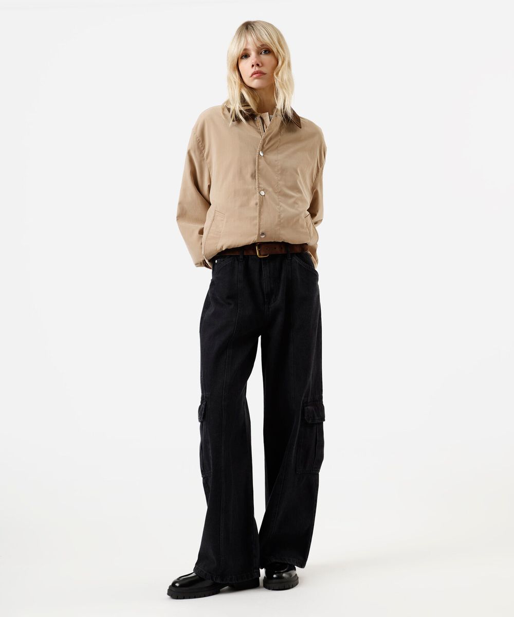 calça cargo oversized feminina jeans cintura baixa preta
