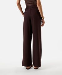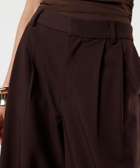 calça de alfaiataria feminina com pregas marrom