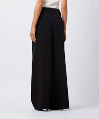 Calça de alfaiataria feminina confeccionada em tecido plano. A peça tem a modelagem e construção reta e o caimento é confortavelmente solto ao corpo. O modelo tem cintura alta, cós com passantes para cinto, pregas decorativas e fechamento por zíper e botão. Possui dois bolsos na parte frontal, um decorativo na parte posterior e acabamento pespontado nas barras.