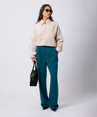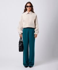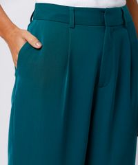calça de alfaiataria feminina com pregas mindset verde