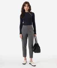 calça de alfaiataria reta feminina com pences cinza
