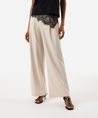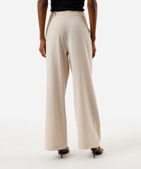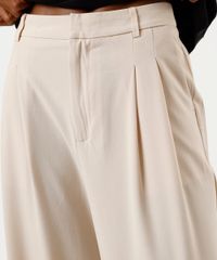 calça de alfaiataria wide leg feminina com pregas bege