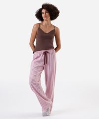 calça de pijama avulsa feminina em algodão listrada rosa