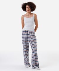 calça de pijama avulsa feminina em algodão xadrez azul