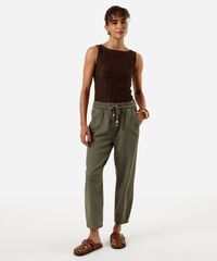 calça feminina clochard com cinto cordão verde