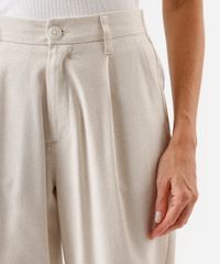 calça feminina com linho e pregas cós elástico bege