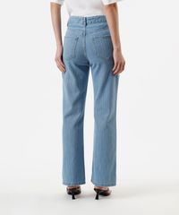 calça feminina jeans wide leg slim cintura média listrada azul