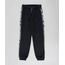 Calça infantil masculina confeccionada em moletom. A peça tem faixa lateral estampada com o tema do personagem Batman, da Liga da Justiça. O cós tem elástico e cordão de ajuste embutidos. A barra tem acabamento em ribana.