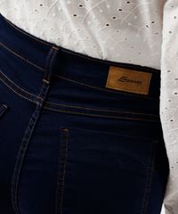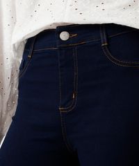 Calça feminina confeccionada em jeans com algodão. A peça tem modelagem cigarrete e caimento ajustado ao corpo. Possui cintura alta, cós com passantes aplicados, três bolsos frontais e dois bolsos posteriores, detalhe posterior com tag Sawary e fechamento com botão e zíper. Acabamento pespontado.