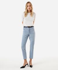 Renove seu visual com a calça jeans mom, uma peça que une o charme retrô com a modernidade do dia a dia. Confeccionada em jeans 100% algodão, ela oferece um caimento estruturado e confortável, perfeito para compor looks cheios de personalidade. Esta calça jeans feminina com cintura alta é a escolha certa para quem busca versatilidade sem abrir mão do estilo.