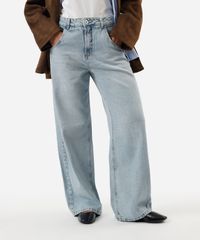 calça jeans oversized cintura média azul