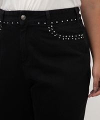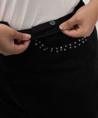 Esta calça jeans é extremamente versátil. Para um look casual e despojado, combine-a com uma camiseta estampada e tênis. Se a ideia é uma produção noturna com uma pegada rocker, aposte em uma blusa de gola alta, uma jaqueta e um coturno. Para um visual mais elegante, use-a com uma camisa de seda ou um body de renda e um sapato de salto. Os detalhes de tachas já dão o toque final ao look.