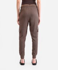 Calça feminina confeccionada em tecido texturizado com toque leve. A peça possui modelagem jogger com caimento solto, cintura alta, cós com elástico embutido e cordão para ajuste, dois bolsos frontais estilo faca e dois bolsos laterais estilo cargo, elástico embutido nas barras e acabamento pespontado.