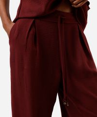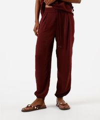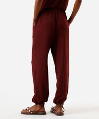 Calça feminina confeccionada em em tecido plano texturizado. A peça tem a modelagem jogger, com construção afunilada e o caimento é confortavelmente solto ao corpo. O modelo tem cintura alta, cós com elástico embutido, pregas decorativas e cordão para ajuste. Possui dois bolsos na parte frontal e acabamento com elástico embutido nas barras.
