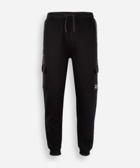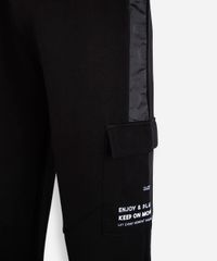 calça jogger juvenil de moletom com bolso cargo preta