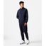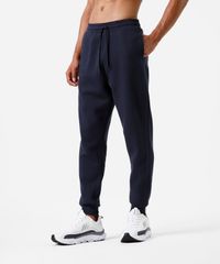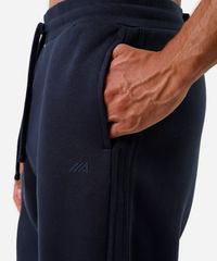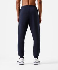 Calça masculina confeccionada em moletom. A peça tem a modelagem jogger, com construção afunilada e o caimento é solto ao corpo. O modelo tem cintura média, cós com elástico e cordão. Possui dois bolsos na parte frontal e viés na laterais. Detalhe de acabamento com punhos aplicados nas barras.