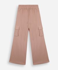 calça juvenil cargo wide leg texturizada bege