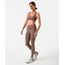 Calça feminina confeccionada em malha de poliamida. A peça tem a modelagem legging, com construção afunilada e o caimento é confortavelmente ajustado ao corpo. O modelo tem cintura alta, cós largo com recorte em tom contrastante. Detalhe de acabamento pespontado nas barras.