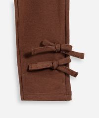 Calça infantil confeccionada em malha de algodão. A peça possui modelo legging, cintura alta, cós elástico, caimento confortavelmente justo ao corpo, laços aplicados na barra e acabamento pespontado. Composição: 96% Algodão 4% elastano Instruções de lavagem: - Lavar à temperatura máxima de 40ºC - Proibido o alvejamento - Não secar em tambor - Secagem em varal - Passar à temperatura média - Não lavar à seco - Limpeza à úmido processo suave