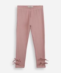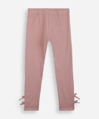 Calça infantil confeccionada em malha de algodão. A peça possui modelo legging, cintura alta, cós elástico, caimento confortavelmente justo ao corpo, laços aplicados na barra e acabamento pespontado. Composição: 96% Algodão 4% elastano Instruções de lavagem: - Lavar à temperatura máxima de 40ºC - Proibido o alvejamento - Não secar em tambor - Secagem em varal - Passar à temperatura média - Não lavar à seco - Limpeza à úmido processo suave