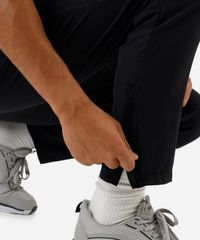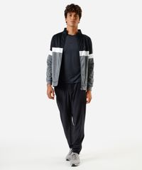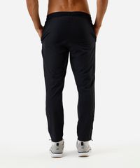 Calça masculina confeccionada em malha com viscose. A peça tem corte afunilado e o caimento solto ao corpo. O modelo tem cintura média, cós com elástico embutido e cordão para ajuste. Possui dois bolsos na parte frontal e abertura por zíper nas barras.