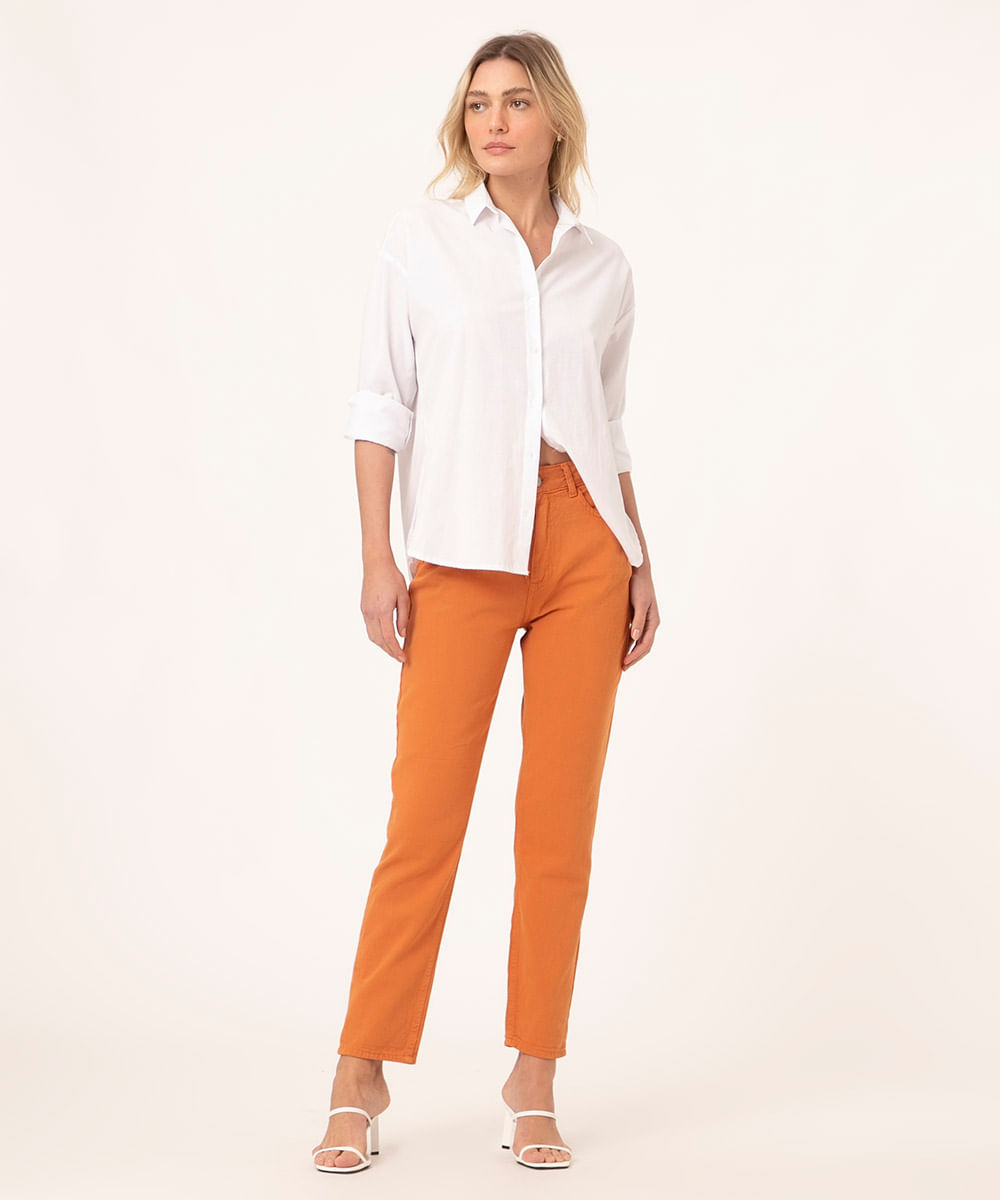 • Modelagem mom com cintura super alta, que proporciona um visual alongado e moderno.