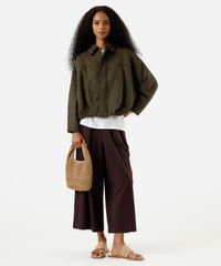 calça pantacourt feminina cós elástico marrom