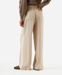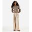 calça pantalona feminina com linho e faixa bege