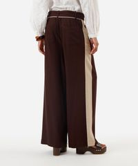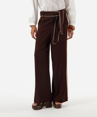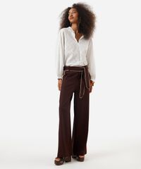 calça pantalona feminina com linho e faixa marrom