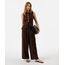 calça pantalona feminina com linho e pregas cós elástico marrom