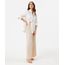 Calça feminina confeccionada em tecido sintético com efeito plissado. Possui modelagem pantalona, cintura alta, cós com elástico embutido e barra à fio. Esta peça possui uma leve transparência.