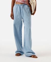 calça pijama feminina jeans cós elástico azul