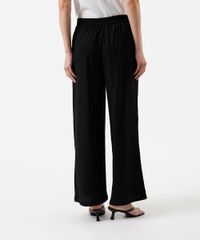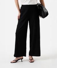 Calça feminina confeccionada em em tecido plano texturizado. A peça tem a modelagem e construção reta e o caimento é confortavelmente solto ao corpo. O modelo tem cintura alta e cós com elástico embutido. Possui dois bolsos na parte frontal e acabamento pespontado nas barras.