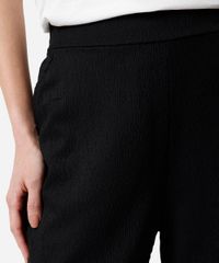 calça reta básica feminina cós elástico texturizada preta