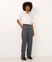 calça reta de alfaiataria cós com elástico cinza