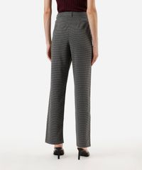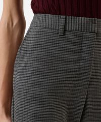 Calça de alfaiataria feminina confeccionada em tecido plano com estampa xadrez. A peça tem a modelagem e construção reta e o caimento é confortavelmente solto ao corpo. O modelo tem cintura alta, cós com passantes para cinto e fechamento frontal por botão e zíper. Possui dois bolsos na parte frontal e acabamento pespontado nas barras.