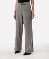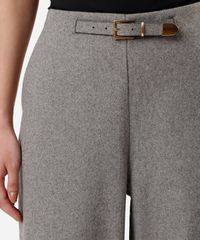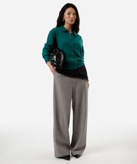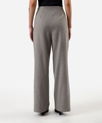 Calça de alfaiataria feminina confeccionada em tecido plano. A peça tem a modelagem reta e o caimento é confortavelmente solto ao corpo. O modelo tem cintura alta, cós com cinto embutido e fechamento lateral por zíper. Possui dois bolsos faca na parte frontal e acabamento pespontado nas barras.