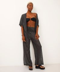 calça saída de praia de tela lurex preta