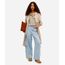 Esta calça jeans larga feminina se destaca por seus detalhes únicos: