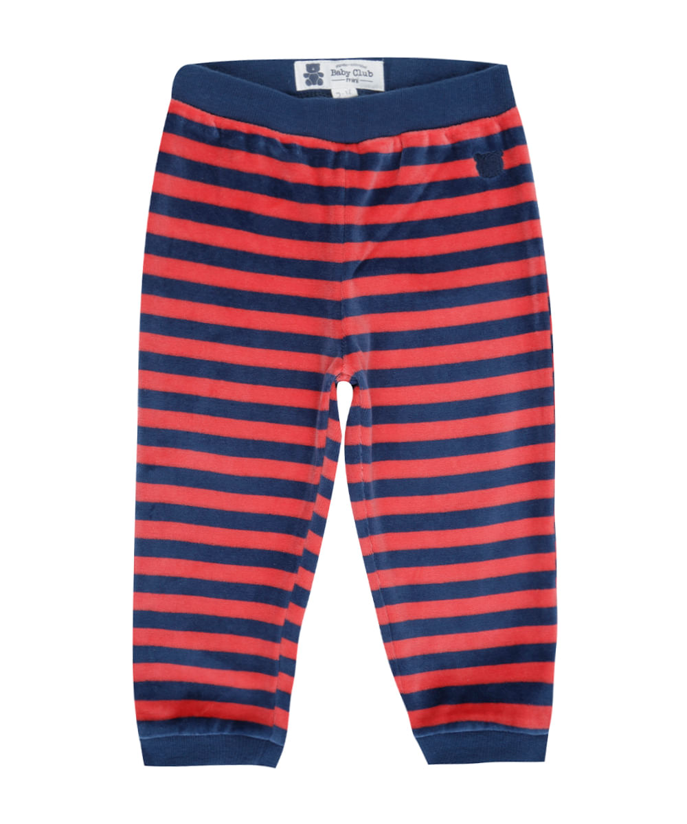 Calça desenvolvida em plush de algodão + sustentável, o seu cultivo preserva os recursos naturais não utilizando agrotóxicos. Tem estampa formada pela padronagem listrada. O modelo tem cós e a barra tem acabamento com elástico embutido.