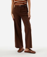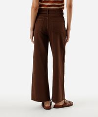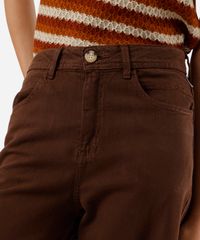 calça wide leg cropped feminina de sarja marrom