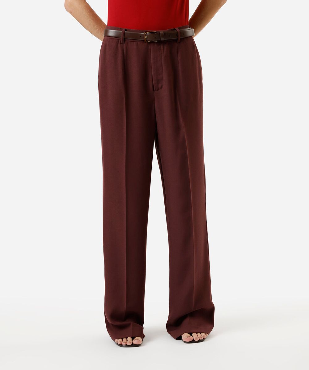 calça wide leg de alfaiataria feminina cintura alta - vinho