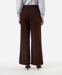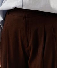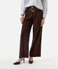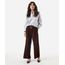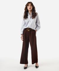 calça wide leg de alfaiataria feminina com linho e pregas marrom
