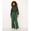 calça wide leg de viscose cintura alta com elástico - verde escuro