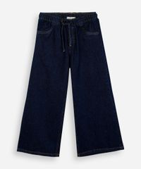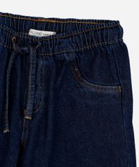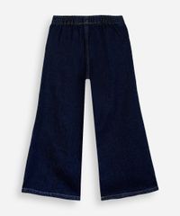 Calça infantil confeccionada em jeans. A peça possui modelagem wide leg estilo pijama com caimento ao corpo proporcionando um maior conforto durante as atividades da criança, cintura alta, cós com elástico embutido e cordão para ajuste, dois bolsos frontais decorativos, detalhes de recortes e acabamento pespontado.